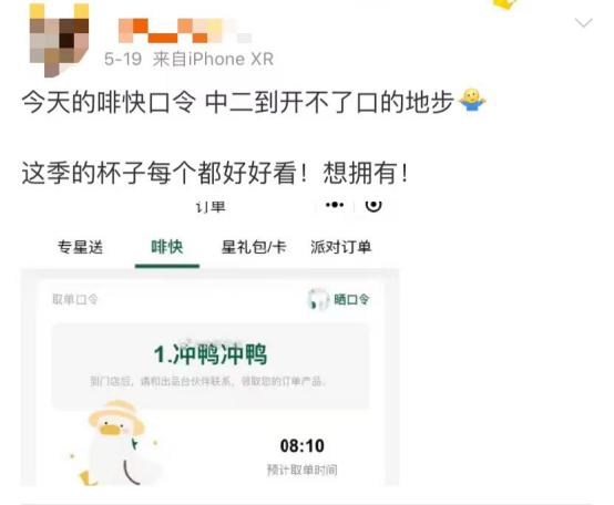 还有就是啡快点餐的口令环节,稀奇古怪的口令:“甩碗米线”、“冲鸭冲鸭”...... 让尴尬症患者直接社死,恨不得用脚趾在地上抠个两室一厅出来。