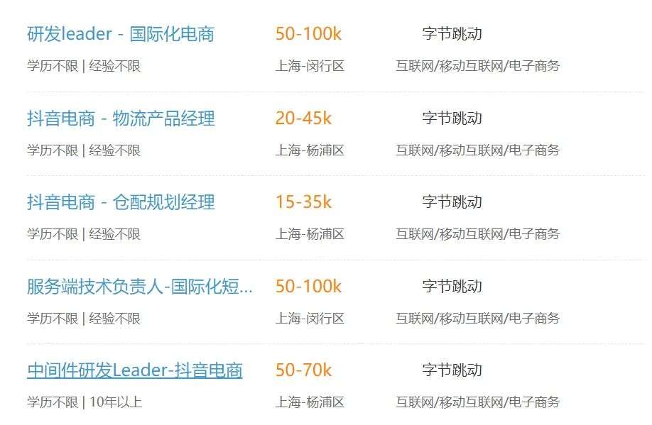 目前,字节跳动的独立电商应用还未正式启动,正在做技术准备、团队组织架构梳理和招聘。但猎聘上的“研发leader-抖音电商物流中台”等岗位,也进一步表明了字节跳动搭建供应链的急迫心情。