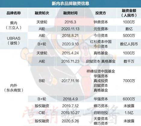 内外成立于2012年,主打的则是“主打无钢圈、舒适”。它获得的融资轮次则更多,目前已累计获得约7次融资,公开的累计金额就在3亿元以上。投资方包括真格基金、启赋资本、华强资本、启明创投等。
