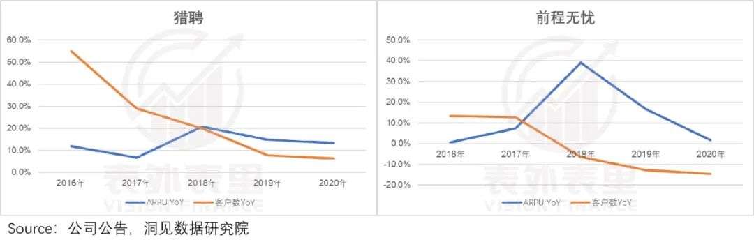 相比之下,目前的前程无忧和猎聘,其收入增长已经走过了增量驱动阶段,而转变为提价驱动。