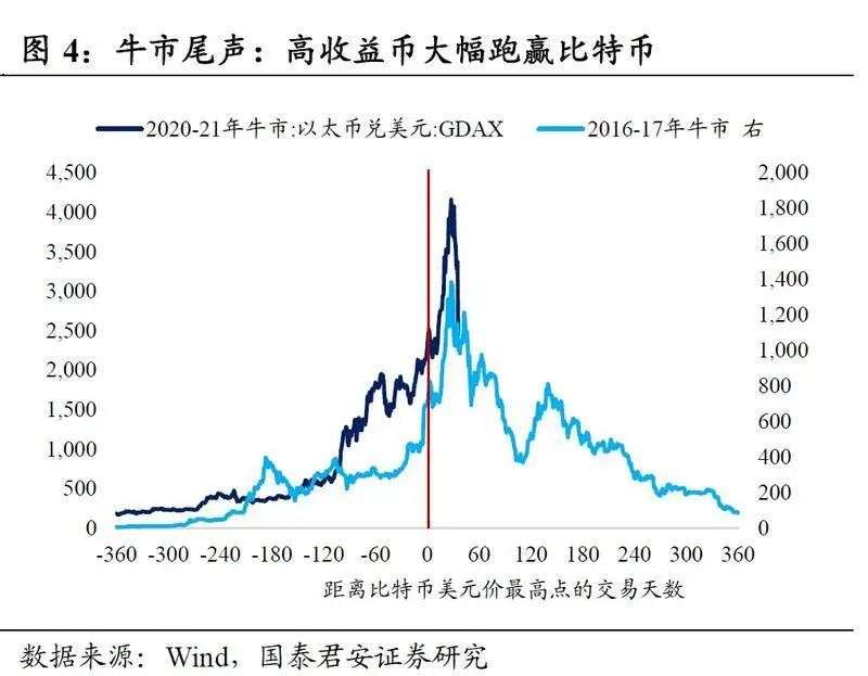 还有另一重似曾相识:在虚拟货币牛市的上半场,比特币收益一马当先;而当行情扩散,其他高收益数字币大幅跑赢比特币,场内加杠杆行为加剧,便意味着下半场到来了。