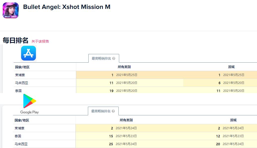 据Appannie平台录得的信息显示,《Bullet Angel》由金山软件发行,研发者则是金山旗下的西山居。这款以FPS产品在5月13日上线后,迅速打入了马来西亚、泰国、柬埔寨、新加坡、菲律宾以及印度尼西亚这六个东南亚国家双端的游戏免费榜头部。