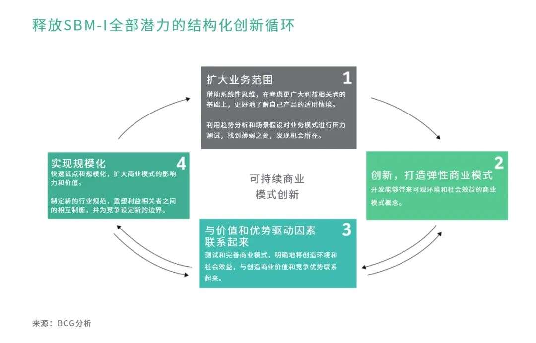 可持续商业模式创新的全部潜在价值,只有在新商业模式实现规模发展时才能达成;全公司、整个供应链、公司网络和生态系统中的人都参与进来,进一步扩大影响和优势。