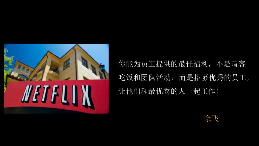 4年前我去奈飞参观时,他们提倡的理念给我的印象颇深。奈飞说,一家公司能到给员工最佳的福利,不是炫酷的团建活动也不是茶水间好喝的咖啡,而是招募比他还要优秀的员工,让员工可以和行业内最优秀的人一起工作,这才是最好的员工福利。