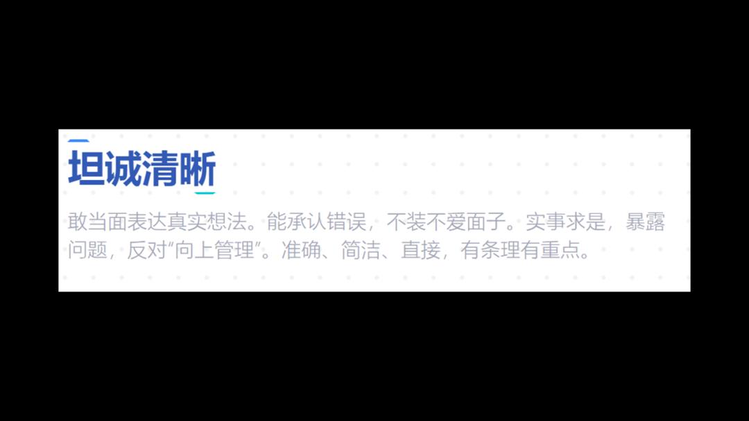 字节跳动的企业文化里有一条,叫做打造“坦诚清晰”的企业文化,可以理解为“敢当面表达真实想法,反对向上管理,坦诚直接”。