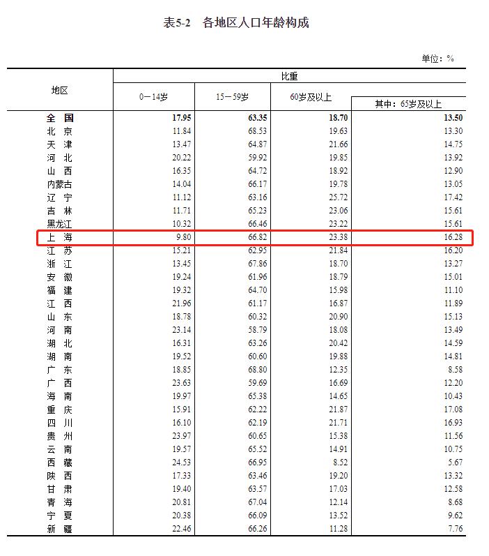 上海60岁以上人口占到了23.38%,有意思的是,上海的劳动年龄人口占了67%左右,而全国这个数据63.35%。什么意思呢?