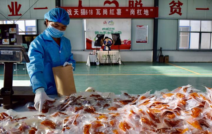 确山县商务局局长袁贺忠说,他们一款地产品牌“岗杠地”红薯干创造了3秒4万单的销售成绩,通过直播,他们找到了农产品上行的新通道。2020年,确山农产品电商交易额达5.7个亿,比2019年增长了80%。