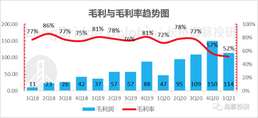 但整体上毛利率并没有市场预期般下滑的那么明显,本季度毛利114亿,毛利率51.5%,市场一致预期是50.6%。