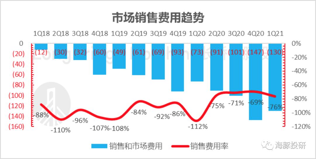 但是这个季度,因为买菜业务的推广,补贴力度再次回归,单季销售费用130亿,粗略估计超出市场预期大约10亿多,相对3P收入的销售费用率回到利润转正之前75%+水平。