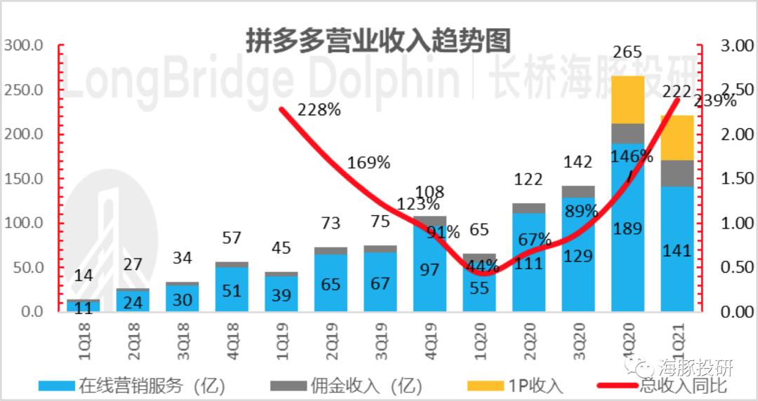 另外,买菜业务由于按佣金计收入,加上佣金上前段时间媒体报道拼多多也开始对一些品类开始抽佣,这个季度拼多多佣金达到了29.3亿,同比增长180%。