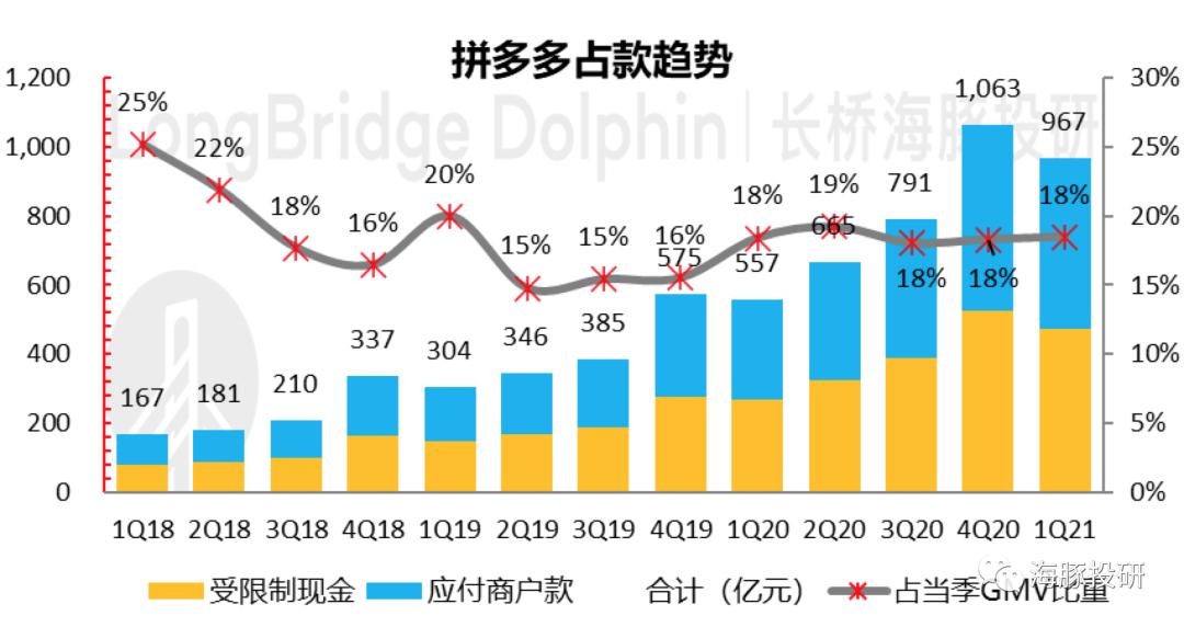 而用户确认收货之后,商家还没有收到打款之前,这部分GMV被拼多多定义为了应付商家款。