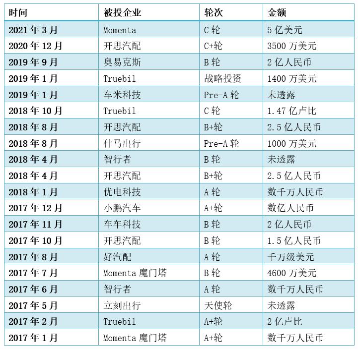 2017年以来顺为资本在泛汽车出行领域的投资事件,来源:IT桔子数据,作者绘制