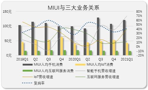 Q1售出手机4940万部,MIUI月活增长2900万,也就是说,有2400万购机者来源于MIUI用户,复购率为41.3%,去年同期复购率仅为28%。