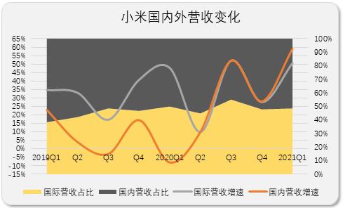 分市场看,小米国内外市场杠上开花,且无论规模还是增速二者日趋均衡,更容易应对复杂多变的宏观经济形势。