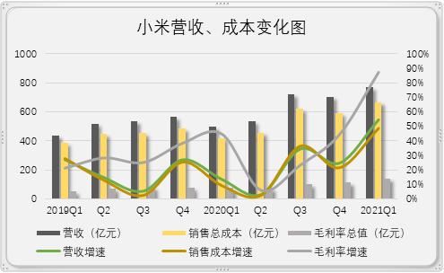 前文提到,小米一季报的增量主要来源于硬件,且同比各项数据皆大幅提升。