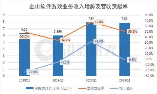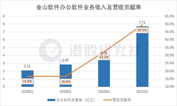 首先是从增速上,相比去年同期增长了104.2%;其次在业务贡献上,办公软件的收入占总营收的比重从去年的33%达到了今年的49%,挤压掉了网络游戏的贡献份额。根据近4年的数据看,都是前所未有的。