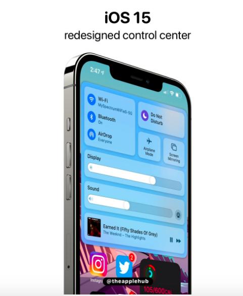 根据网上爆料消息,这次iOS 15的升级主要分为三部分:UI、交互、以及控制中心。
