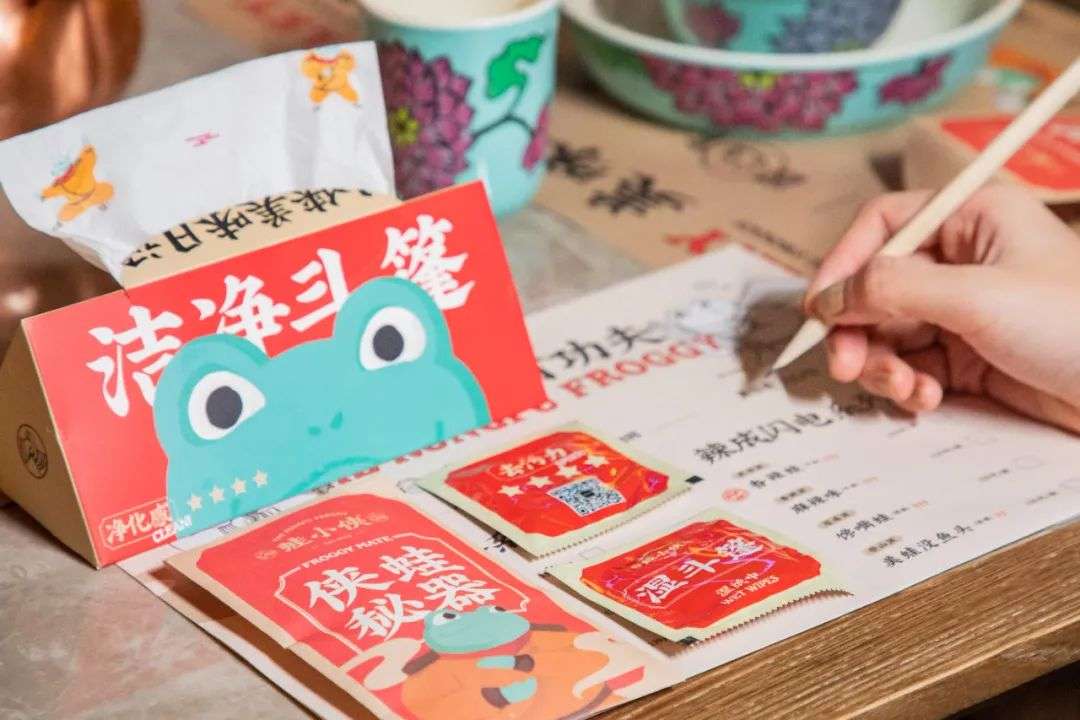 能从一众竞品中突围而出,不仅是产品和供应链的功劳,这与蛙小侠最初选择的“文创IP+餐饮”模式也有很大关系。针对新生代消费者的用户画像和特点,夏旭将中国传承武侠功夫的“侠”作为品牌文化基础,用现代表现手法和漫画的表达形象,使蛙小侠创造了极具独特识别度的IP符号。
