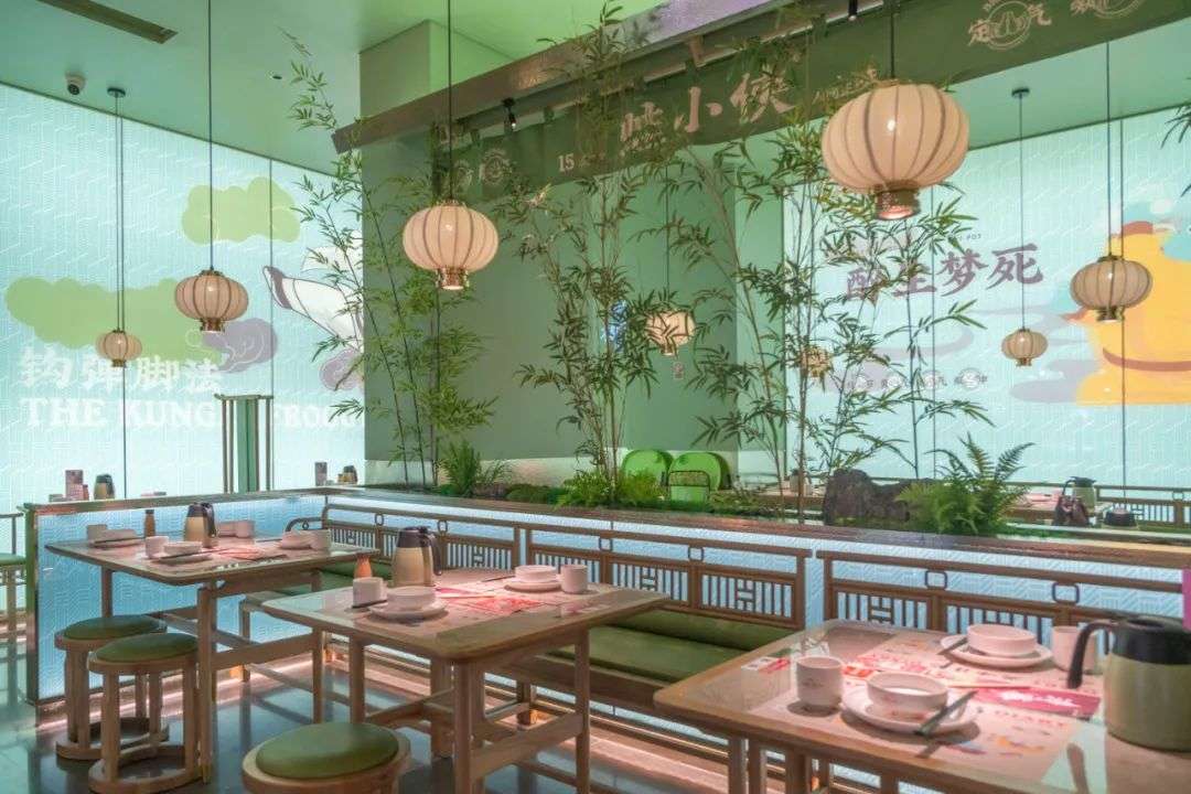 在门店的设计上,夏旭携手了著名的设计师团队,去打造原创的空间形象, 整个店面高度还原武侠场景,让消费者有身临其境的感觉。