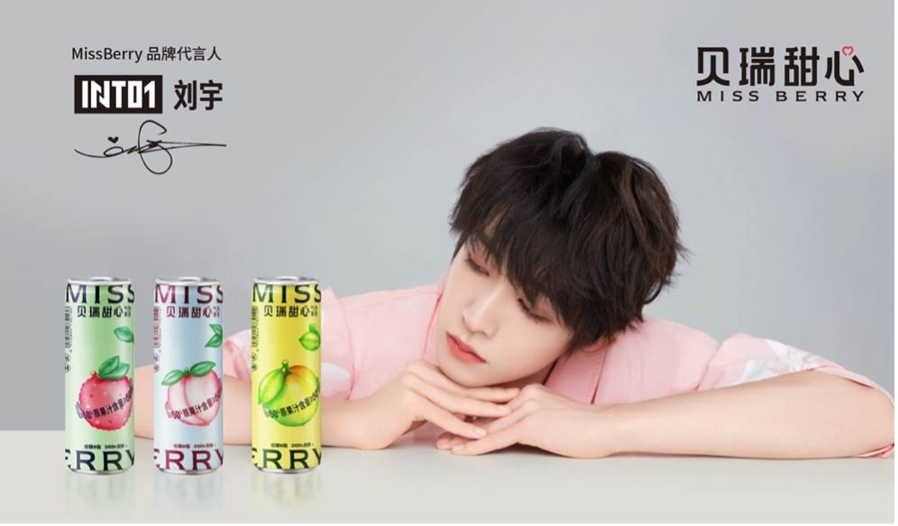 MissBerry百分之八十以上的消费群体是22-30岁之间的年轻女性,同时借助小红书、抖音等社交电商强地域渗透性平台,品牌受众也扩散至三四线城市。在营销模式上,MissBerry主打KOC、KOL以及明星带货等组合营销策略。今年5月,MissBerry官宣创造营C位出道的INTO1-刘宇成为代言人,同时与每日黑巧、元祖食品、谜之生物WHIKO等品牌IP联名,推出巧克力酒、蜂蜜果酒、麻辣香锅酒、冰镇青梅酒等新口味产品。
