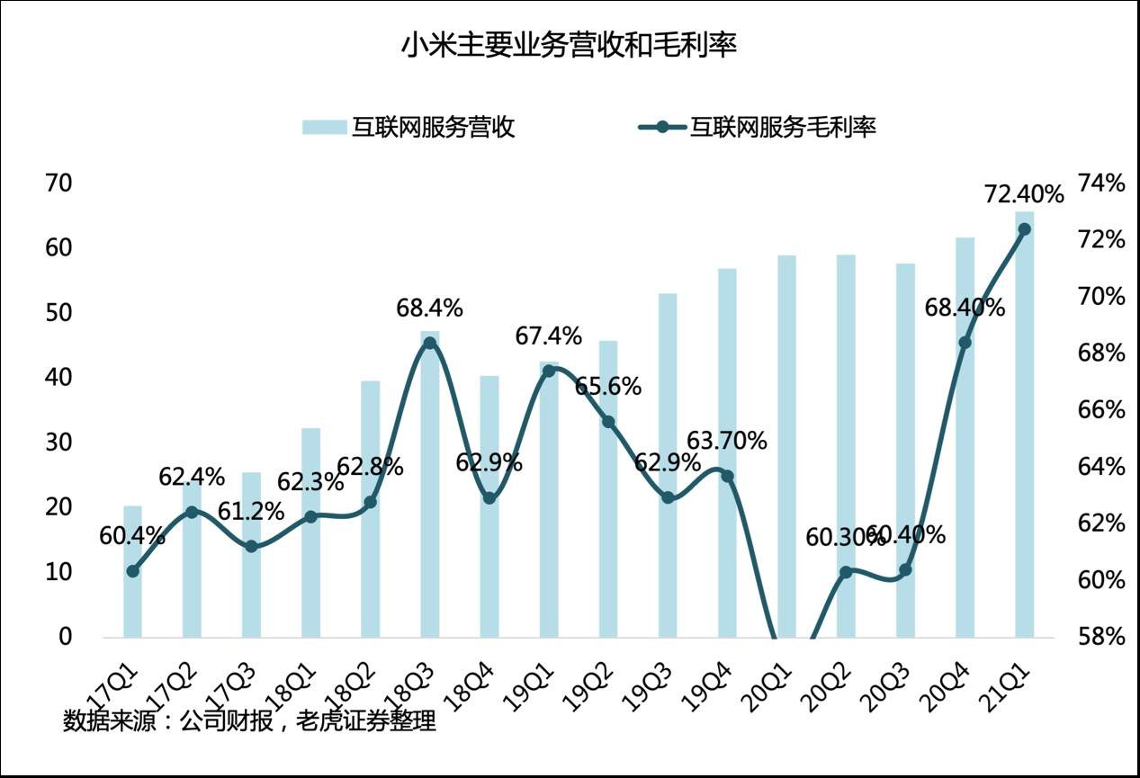 互联网服务分部毛利率由2020年第一季度的57.1%升至2021年第一季度的72.4%,主要是由于广告业务收入占比增高及广告和金融科技业务的毛利率上升所致。