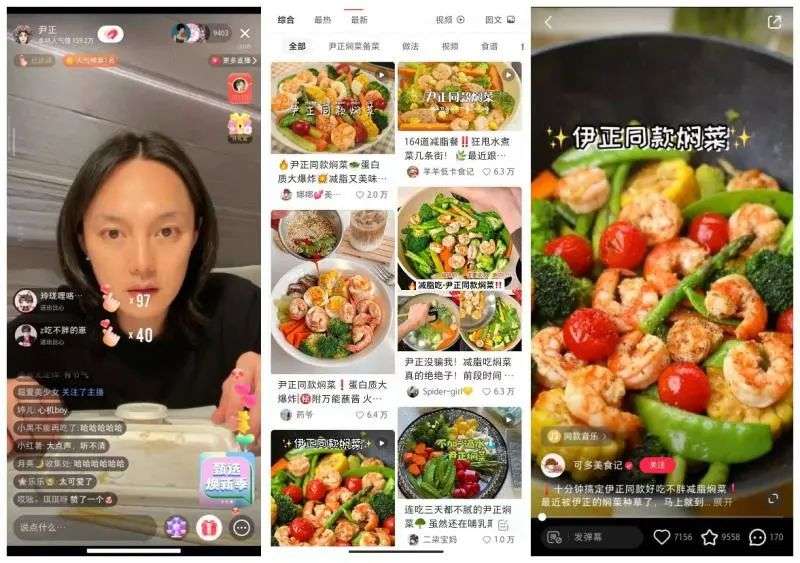小红书的美食内容也在近一年被频繁看见。一个例子是,演员尹正入驻后,凭借减肥食谱“尹正焖菜”多次出圈,在微博、豆瓣等网络社区引发二次讨论和扩散。4月8日,“尹正焖菜”登上微博热搜TOP10。
