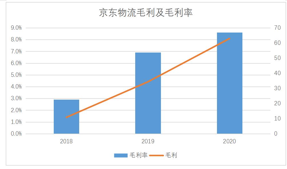 此外,京东物流的毛利率和经调整净利润率在不断提升,这两个指标体现着变现空间。从2018年仅10.8亿元毛利润和几乎无钱可赚的2.9%毛利率,到2020年62.9亿元毛利润和8.6%的毛利率,京东物流正在逐步解决盈利忧虑。