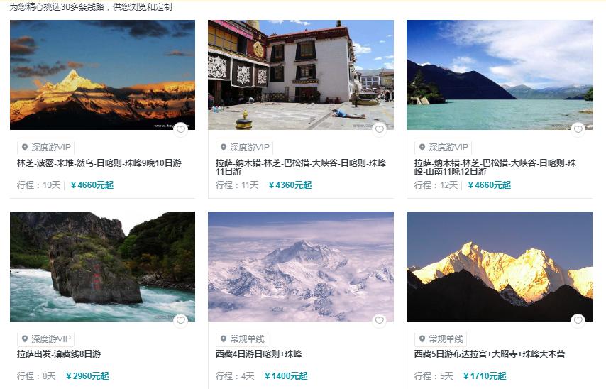 针对不同的旅游者会有不同的相应需求,为了更方便用户查看及了解,西藏中青旅特意设置了不同的套餐!