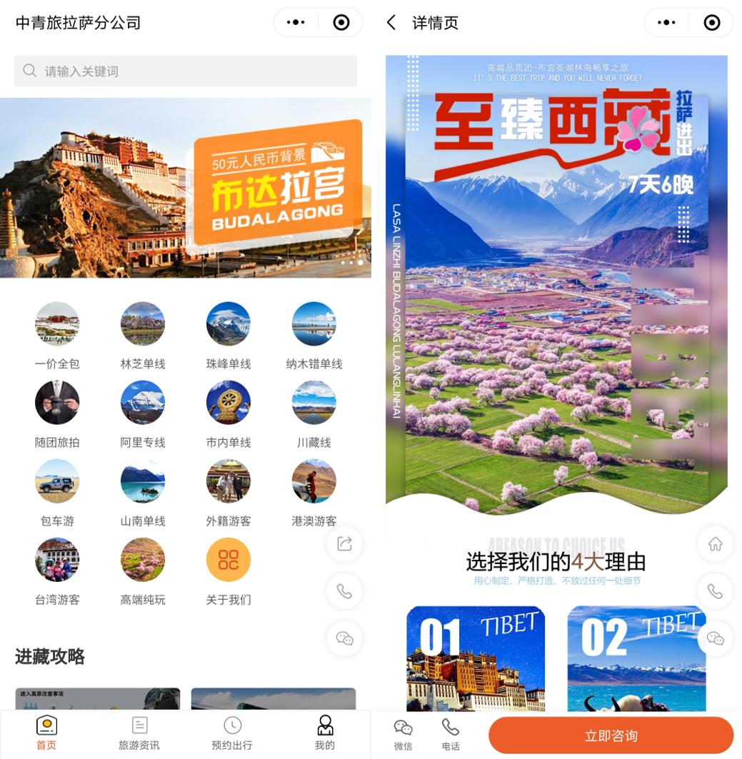 西藏中青社负责人谈道:为了更好地提高用户的满意度和完成用户的旅游诉求,西藏中青旅在“凡科轻站小程序”内特意推出71种额外旅程服务,可供用户选择,其中,包括旅拍,专线,高端纯玩,直升机游等套餐,用户可直接通过“凡科轻站”一键预约,下单方便,清晰及简单。