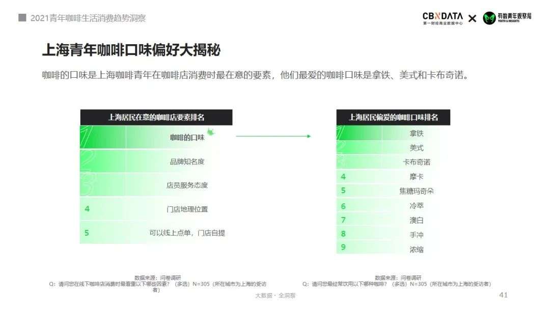 3、拿铁和美式是上海人最爱,口味和品牌知名度最受关注