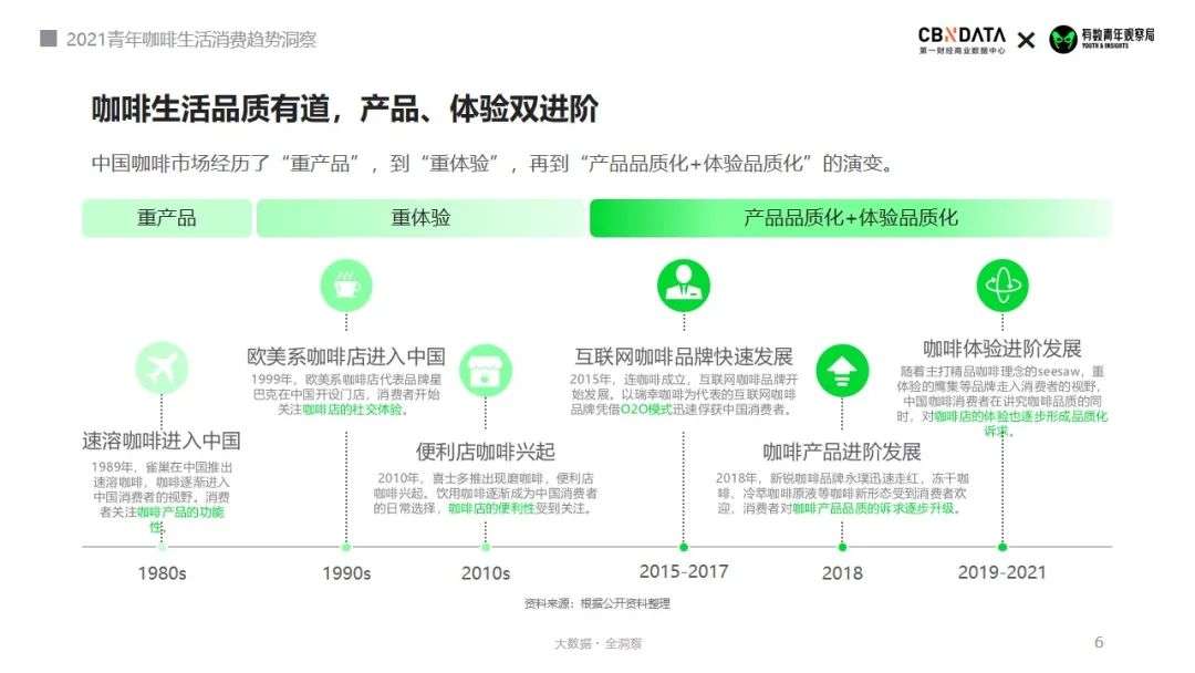 纵观中国咖啡业态的编年史,中国咖啡市场经历了“重产品”,到“重体验”,再到“产品品质化+体验品质化”的演变: