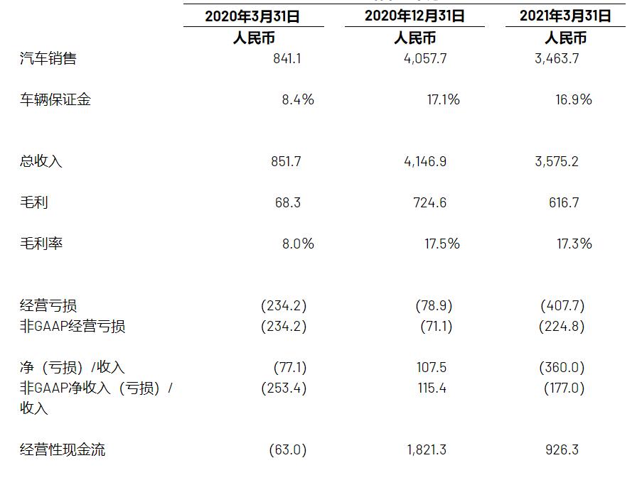 理想汽车2021年一季度业绩情况,截图自财报