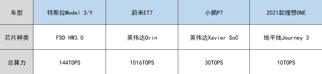 放眼整个行业,特斯拉率先实现了自研芯片,其FSD HW3.0芯片的算力达到了144TOPS,蔚来和小鹏虽然依然使用英伟达旗下的芯片,但ET7和P7的总算力也达到了1016TOPS和30TOPS。