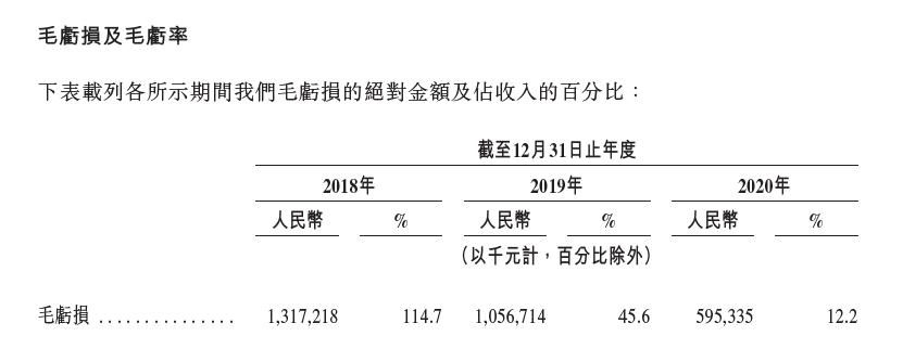 从亏损幅度看:近三年,毛亏损率从114.7%、45.6%,缩窄至2020年的12.2%。