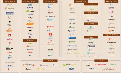 基于人工神经网络算法的深度学习系统是目前各个企业和学术中心关注的热点。不同于通用芯片一般所运行的逻辑运算,深度学习系统的大部分时间都花在低精度的矩阵乘法运算上。而现代电子计算机采用串行运算的方式,面对矩阵乘法的运算效率相对较低。目前实现这一系统的架构来一般可以归结为三类模式:CPU + GPU(图形处理器),CPU + FPGA(现场可编程门阵列),CPU + ASIC(专用集成电路)。根据硅谷人工智能研究组织OpenAI统计,在2012-2020年的8年间,深度人工神经网络的浮点计算量也在以指数速率快速增长,平均每3.4个月翻一倍,远超集成电路摩尔定律的增长速率,同时也伴随惊人的能耗问题,限制了人工智能的发展。于是各企业和研究中心目前致力于设计专门针对人工智能深度学习的硬件,目前参与者从外国到中国,从行业巨头到初创企业,数量众多。他们不光涉及到了芯片生产的各个环节,还涉及到了广泛的应用场景,更有尝试打破现代电子计算机框架。