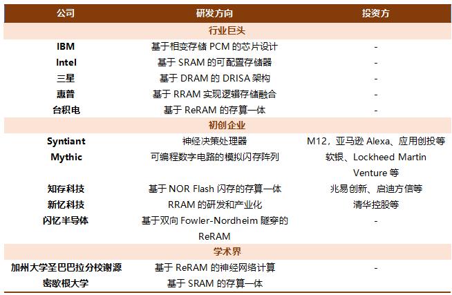 (资料来源:公开资料,本翼资本整理)表二:存算一体主要玩家