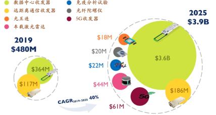 (资料来源:Yole,本翼资本整理)图九:2019到2025年硅光市场规模预测