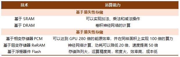 (资料来源:公开资料,本翼资本整理) 表一:存算一体主要技术分类