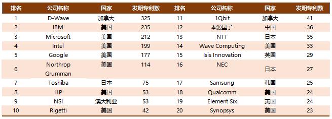 在2015年7月,阿里巴巴就与中国科学院联合成立了量子计算机实验室。2017年5月,潘建伟教授团队联合王浩华教授团队发布了基于光子和超导体系的量子计算机研究方面的突破性进展。在光学体系,在实现十光子纠缠操纵的基础上,利用高品质量子点单光子源构建了世界首台超越早期经典计算机的单光子量子计算机。2017年10月,清华大学、阿里巴巴-中科院(施尧耘团队)、本源量子-中科大(郭光灿院士团队)在同一天发布了各自的量子云平台。2018年2月,中科院与阿里云在超导量子计算方向发布11比特的云接入超导量子计算服务。这是继IBM后全球第二家向公众提供10比特以上量子计算云服务的系统。该服务已在量子计算云平台上线,在云端实现了经典计算仿真环境与真实量子处理器的完整后端体验。2018年3月,百度宣布成立量子计算研究所,开展量子计算软件和信息技术应用业务研究,悉尼科技大学量子软件和信息中心创办主任段润尧教授出任百度量子计算研究所所长,直接向百度总裁张亚勤汇报。计划五年时间里在百度组建世界一流的量子计算研究所,并在之后五年将量子计算逐渐融入百度的业务中来。从专利数量排名上看,目前头部公司以 IBM 、谷歌、微软等美国企业为主,中国只有初创企业本源量子一家在前 20 位,差距非常明显。