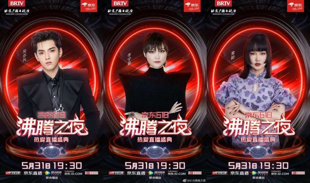 618预售开启后,第一个亮相的晚会则是“京东618沸腾之夜”,该晚会将在5月31日19:30于北京卫视、京东直播、腾讯视频等平台联合播出。官博释出的阵容中,“流量小生”吴亦凡、时代少年团成员,“实力歌手”李宇春、李荣浩、黄龄,“热剧演员”白敬亭、王鸥等赫然在列。而此前网 传肖战会首度以主持人身份参与晚会,引发网友们热议,但此消息暂未得到官方证实。