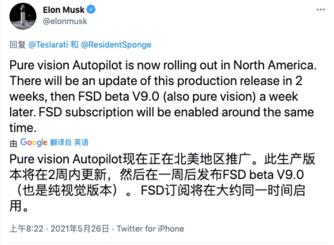 特斯拉宣布“北美畅销车型Model 3和Model Y的Autopilot等驾驶辅助功能,将停止使用雷达传感器,转而采用基于摄像头的系统。”接着马斯克在推特上确认这一消息,并表示,稍后的中国产的特斯拉也会取消。