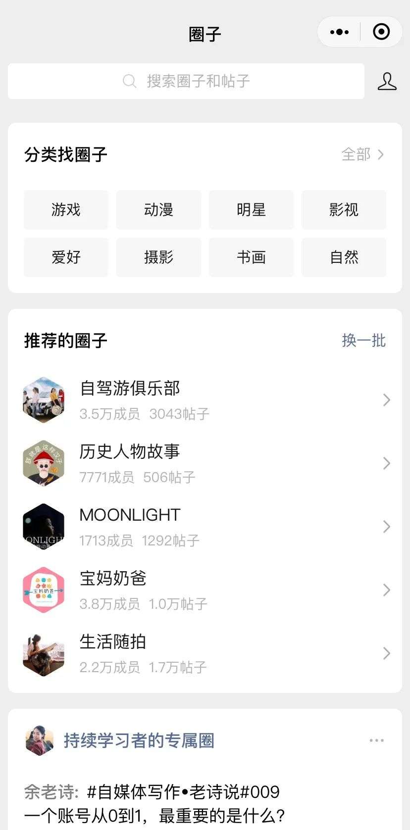 微信圈子的产品逻辑很简单,你能在里面突破自己的好友圈找到圈外人,并且通过内容找到同好,进而融入自己感兴趣的圈子。