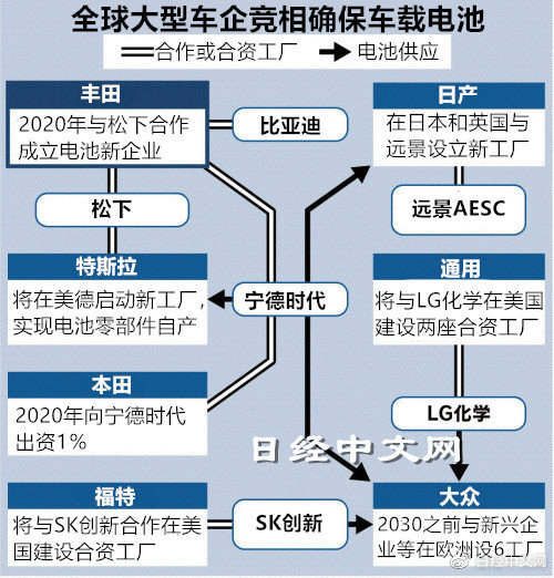 法国雷诺·日产·三菱汽车联盟除了此次决定在日本和英国新建两座工厂之外,还考虑在法国、西班牙等欧洲国家、美国、中国等新建4家电池工厂。在欧洲,法国雷诺与韩国LG化学的合作方案,在中国,日产与宁德时代新能源科技(CATL)的合作方案比较有可能。