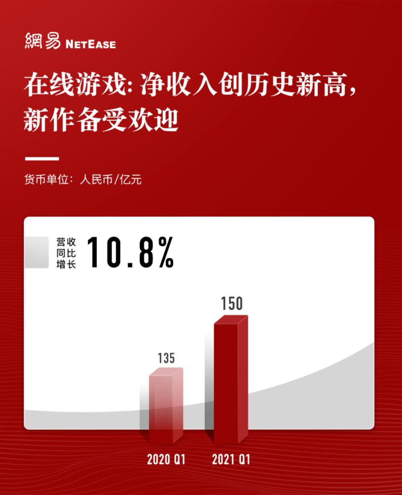 网易第一季度财报显示,其净营收为205亿元人民币,在线游戏服务净营收为150亿元人民币,游戏为网易贡献超过三分之二营收。