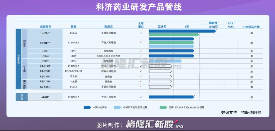 目前,科济药业自主研发的11款差异化候选产品中,有10款属于CAR-T细胞疗法,其中针对靶向B细胞成熟抗原(BCMA)的CAR-T产品CT053,主要用于治疗难治、复发性多发性骨髓瘤,是科济药业唯一的核心候选产品,也是距离商业化阶段最近的产品。