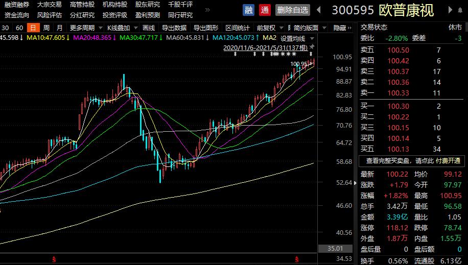 其中31日上午股价创出历史新高的“抱团股”包括宁德时代、东方雨虹、迈为股份、欧普康视。值得一提的是,31日东方雨虹,更是以盘中涨停的方式刷出历史新高。而自5月以来,股价曾创出历史新高的“抱团股”还有长春高新等。