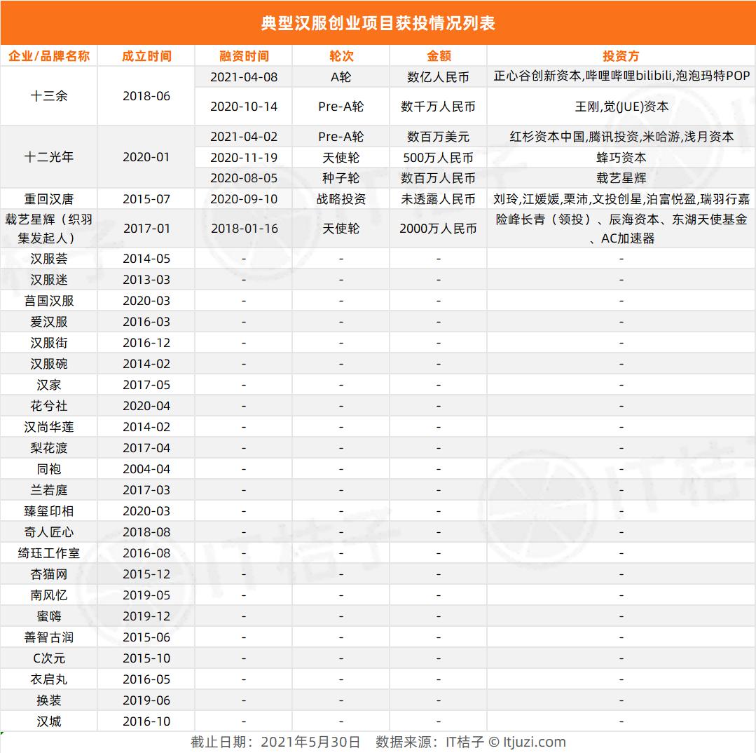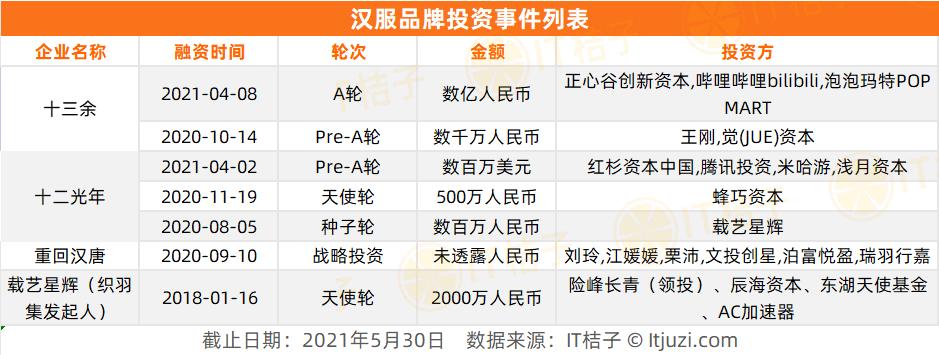 汉服市场投融资情况:获投品牌不足 5 家,资本十分冷静