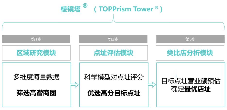 “棱镜塔 ®”仅需三步,通过数字化的应用加持,轻松搞定连锁门店选址: