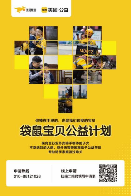 袋鼠宝贝公益计划是由美团配送、北京美团公益基金会于2019年发起的国内首个外卖骑手子女帮扶计划,为全行业外卖骑手子女遇到的大病、意外伤害等困难提供公益帮扶。