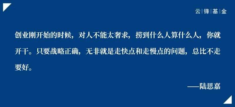 陆思嘉:道理大家都懂,但实际刚创业的时候是要什么没什么,你有想做的战略,但不一定有合适的人。你要的人,人家不来,钱也有限,所以我一开始的真实状态就是逮到谁算谁,他不合适我就把他变成合适的。